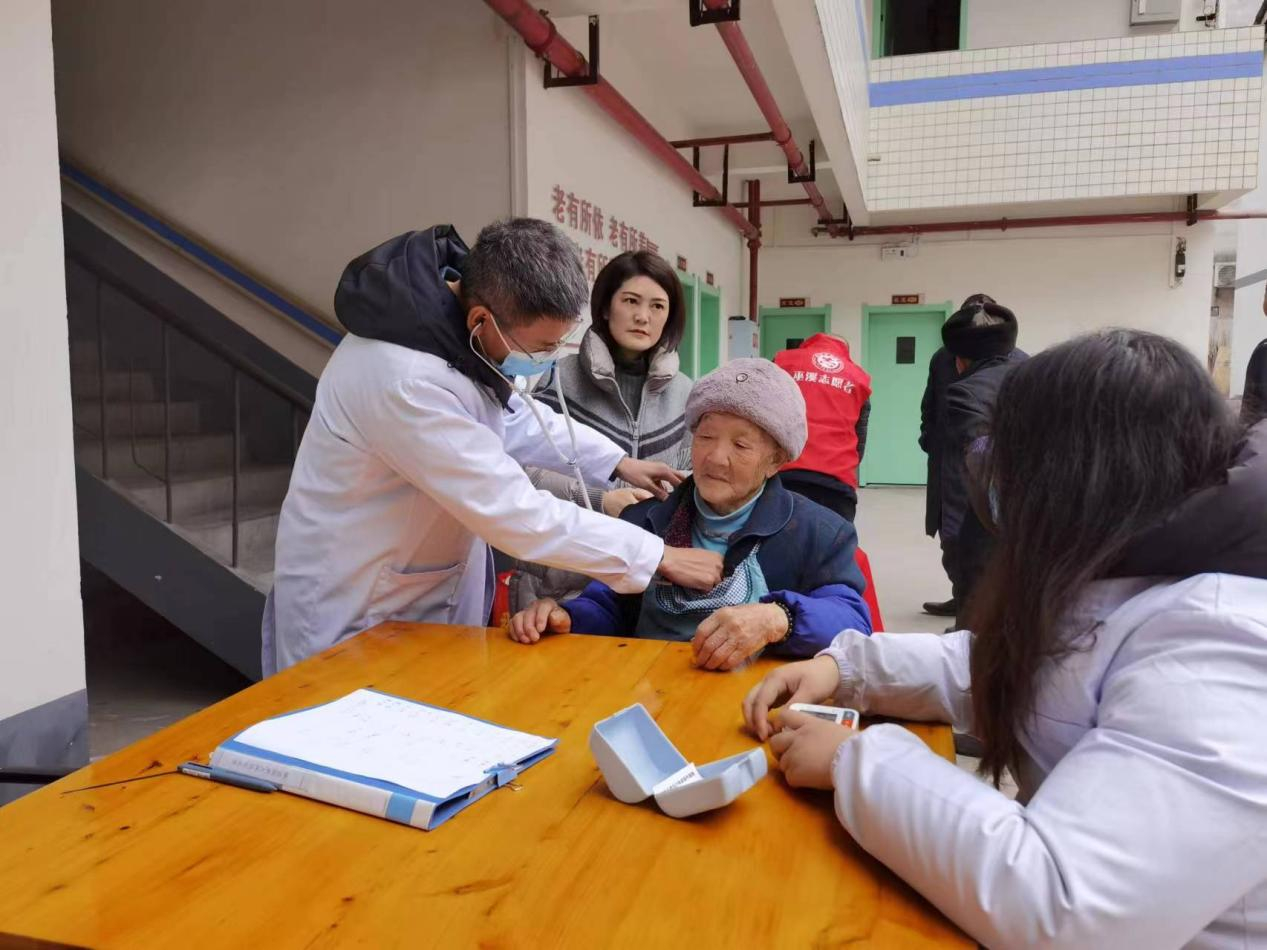 医护志愿者也在敬老院成立了“小诊所”,为老人们免费检查身体,测量血压、心肺听诊、面色观察等服务。