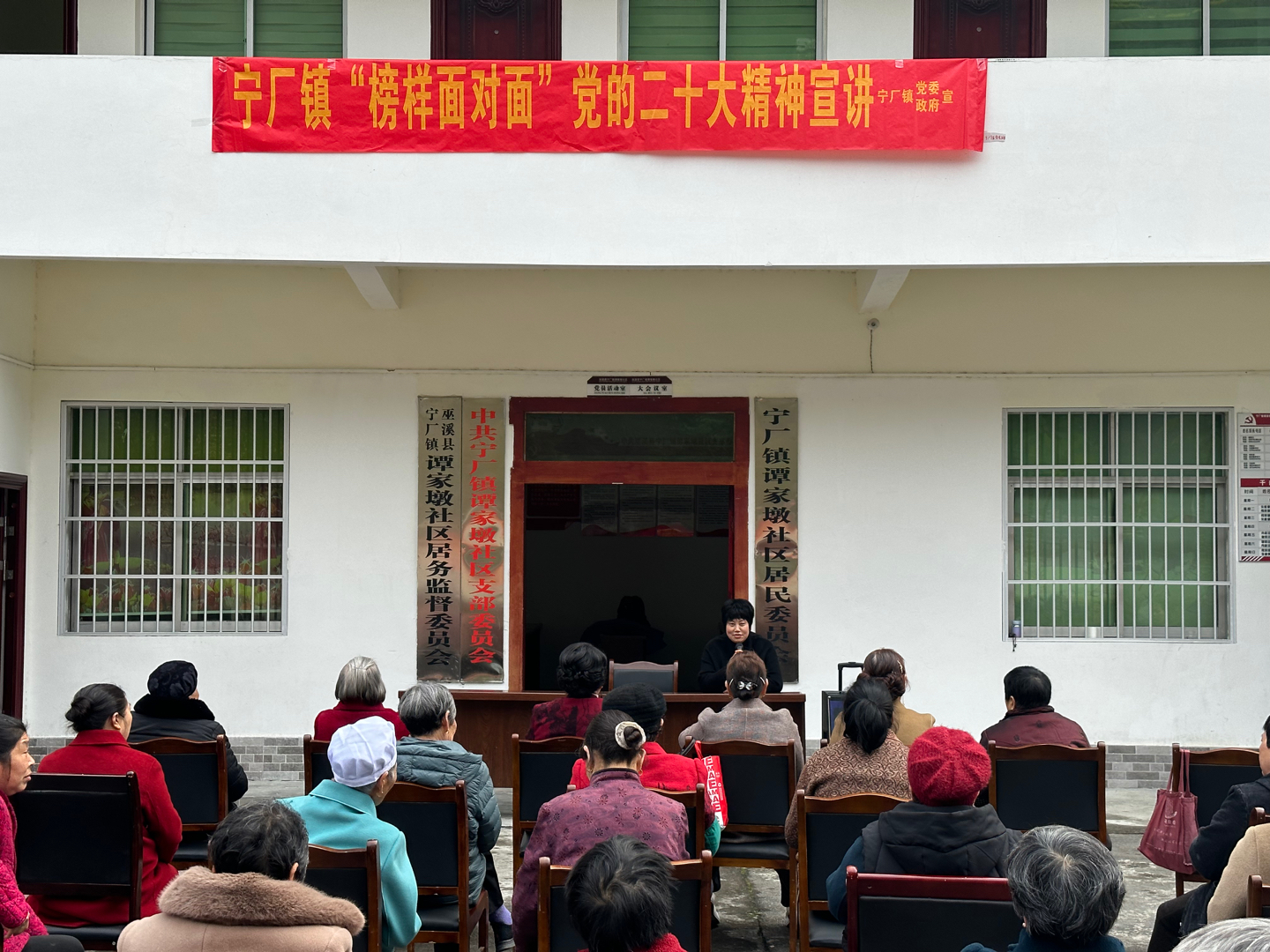 3月7日,“榜样面对面”党的二十大精神宣讲活动走进宁厂镇谭家墩社区,巫溪县“榜样面对面”党的二十大精神宣讲团成员石德荣同志担任主讲人。谭家墩社区全体女性代表共50人参加。