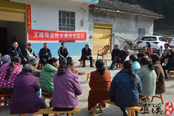 3月9日,文峰镇应急办联合片区公巡中队在文峰镇文峰村召开交通安全宣传院坝会。文峰村村社干部,附近村民到场参加宣讲会。