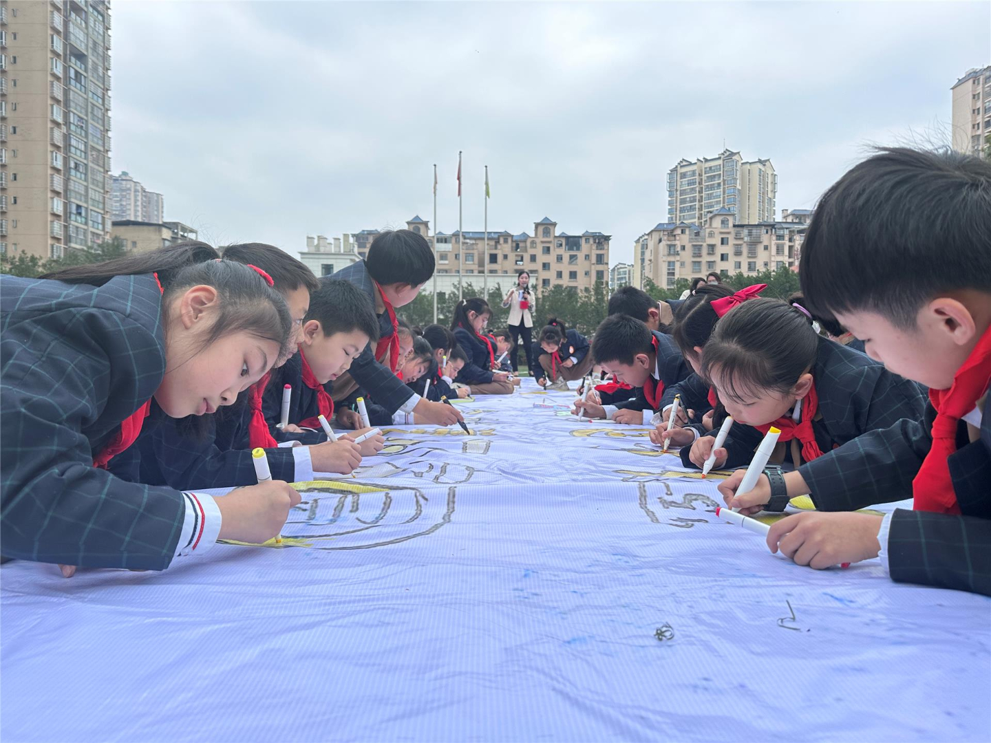 在“4.15全民国家安全教育日”来临之际,朝阳小学开展“维护国家安全 守护美丽家园”十米画卷绘制主题活动。