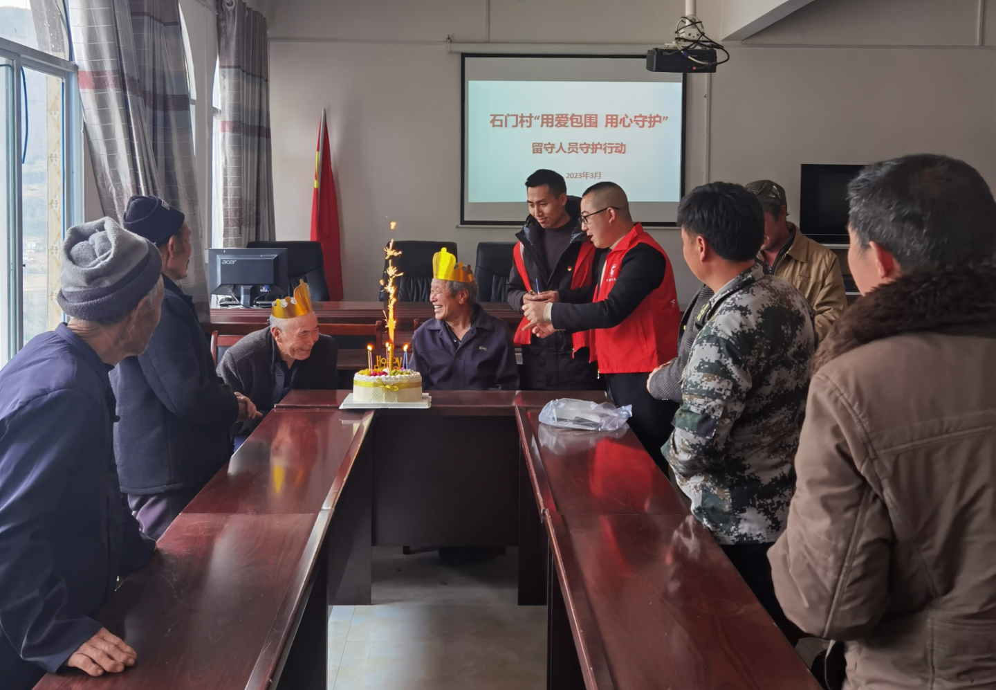 3月21日,下堡镇石门村党支部、新时代文明实践站组织开展“用爱包围·用心守护”留守人员守护行动,为2名留守老人和独居老人庆生。