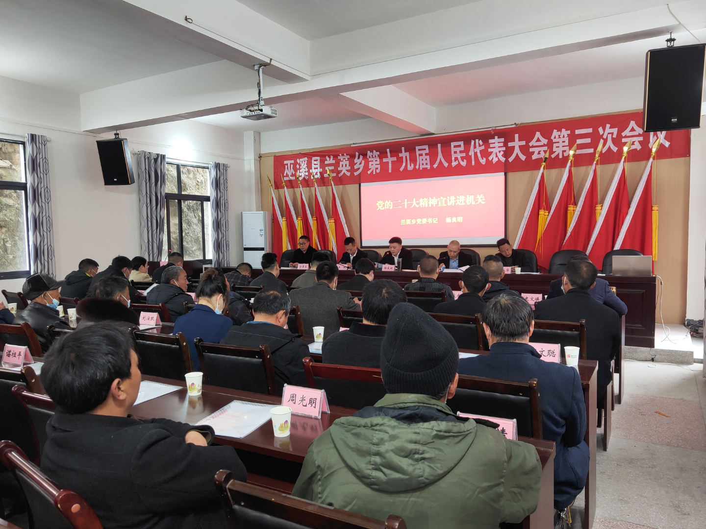 3月22日,兰英乡党委主要负责人在兰英乡第十九届人民代表大会第三次会议上宣讲党的二十大精神,全乡干部职工、各村两委、乡人大代表共70余人参加。