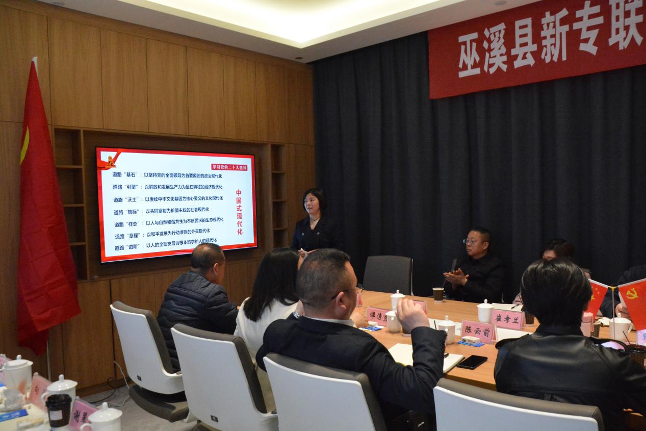 近日,巫溪县委党校高级讲师张宁蓉为巫溪县新专联理事和会员代表宣讲党的二十大精神,县委统战部副部长金平参加。
