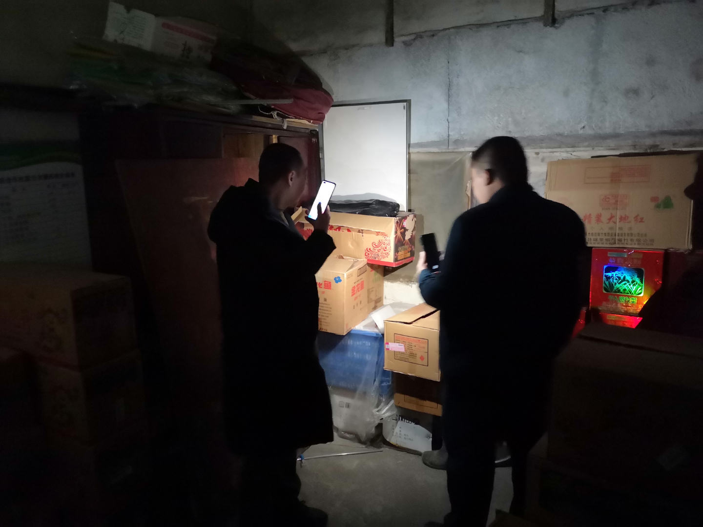 镇主要负责人带领应急办陆续前往中坝、下坝、碾盘、檀木、大坪等村社区,地毯式摸排烟花爆竹零售点仓库、店面,按照危化品储存要求,检查储存环境、流通台账和标识标牌,对零售点负责人宣传烟花爆竹禁售政策及消防安全常识。同时,对零售点的消防疏散通道、安全出口是否保持畅通,消防设施器材配备及使用情况进行全面细致检查。