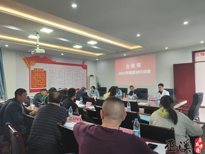 4月11日,一场别具风格的健康知识讲座在白鹿镇召开,各村(社区)两委成员齐聚白鹿镇,仔细聆听由镇卫生院院长谭传国带来的春季卫生健康知识。
