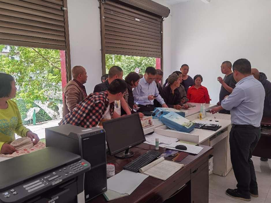 在村办公室,工作人员一对一、面对面帮助村民激活医保卡,详细为村民讲解医保卡有什么功能、如何使用等,解答村民对于医保卡的疑惑,并对医保卡的查询、使用等功能进行现场讲解。