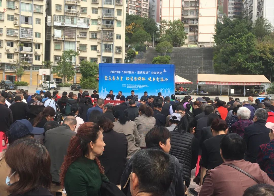 4月12日,以“聚慈善力量,助弱势群体,促乡村振兴”为主题的2023年“乡村振兴·重庆专场”公益活动在县城文体广场举行。