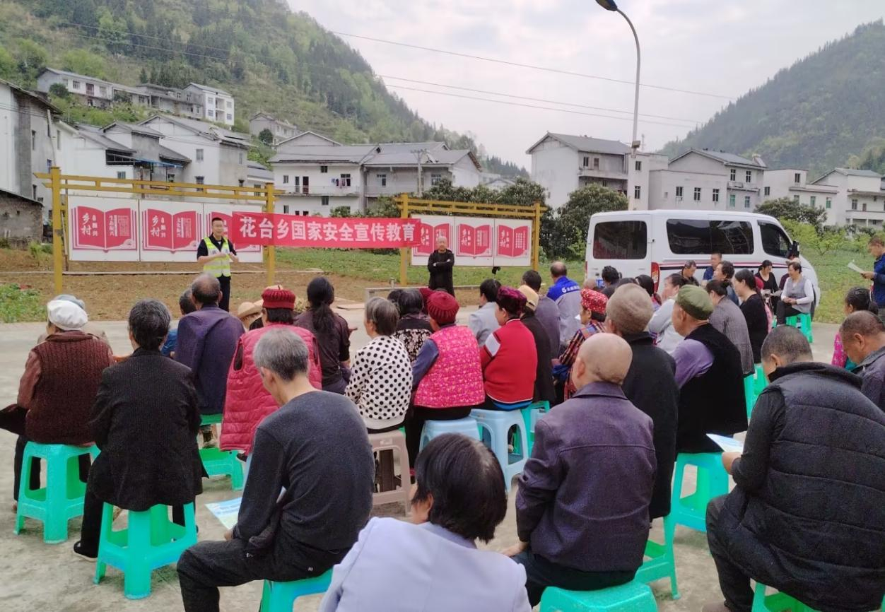加强国家安全宣传,营造浓厚安全氛围。花台乡新时代文明实践站志愿者利用院坝会、下村入户等群众喜闻乐见的方式,通过通俗易懂的语言向现场群众宣传讲解国家安全知识,提高居民国家安全意识,惠及群众达500余人次。