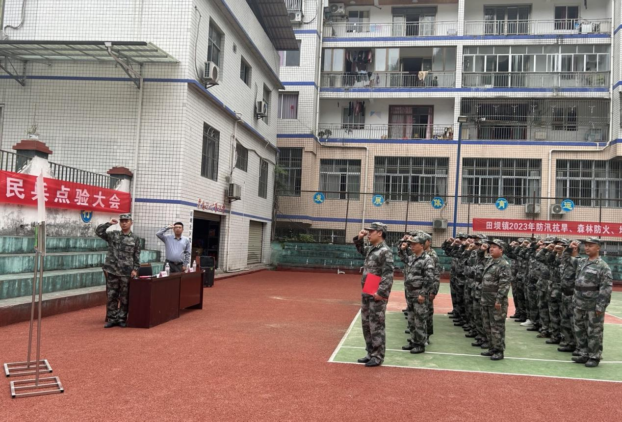 4月18日,田坝镇召开2023年基干民兵点验大会,30名基干民兵参加点验。