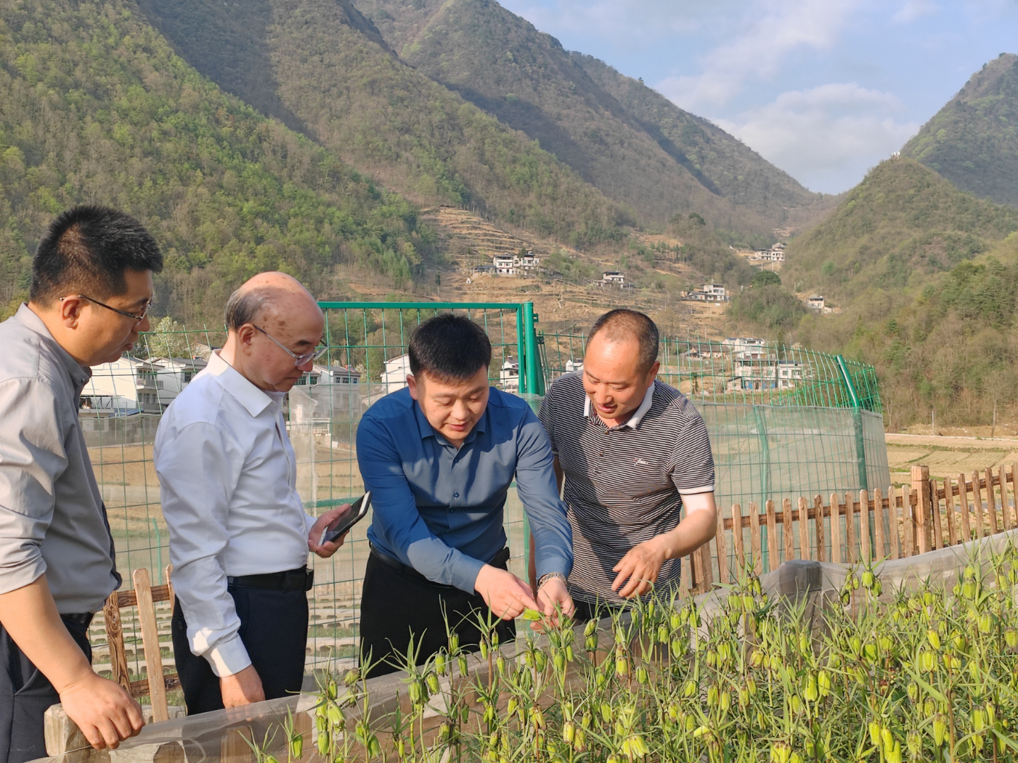 蒋佃水一行先后到中药材初加工工厂和中药材种植基地实地调查,仔细查看贝母、独活等中药材长势,详细了解中药材种植规模、经营模式、经济效益、技术保障、带农增收等情况。