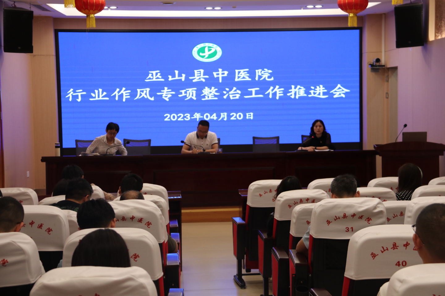 为贯彻落实《重庆市卫生健康委员会办公室关于印发2023年重庆市卫生健康系统行业作风专项整治工作方案的通知》文件精神,持续规范医务人员执业行为,整治影响群众看病就医感受的突出行风问题,4月20日,巫山县中医院组织召开2023年党风廉政建设行业作风专项整治工作推进会。党政领导班子、全院中层干部、各职能科室负责人、行政后勤人员共计100余人参加会议。会议由院党委书记陈泽权同志主持。