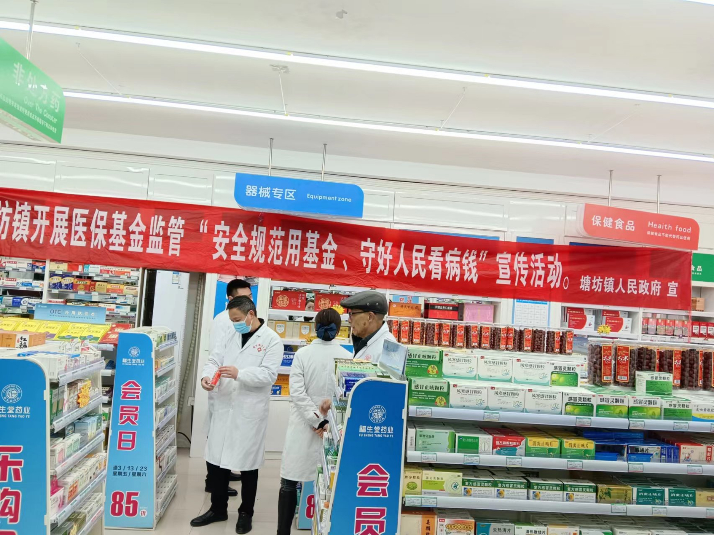 近日,塘坊镇开展以“安全规范用基金 守好人民看病钱”为主题的医保基金监管集中宣传活动。