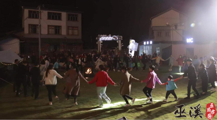 晚上七点钟,音乐会正式开始,来自重庆三峡歌舞剧团的DJ现场打碟,激情的歌曲,动感的节拍,让人忍不住跟着音乐节奏嗨起来,观众打开手机灯光随着歌声一起摇晃,音乐会瞬间变成了灯光的海洋。篝火前,大家手牵着手随着音乐载歌载舞,燃放仙女棒时更是瞬间把人拉回了童年,大家在音乐、灯光、篝火、烟花的热烈氛围中,享受着视觉与听觉的双重盛宴。