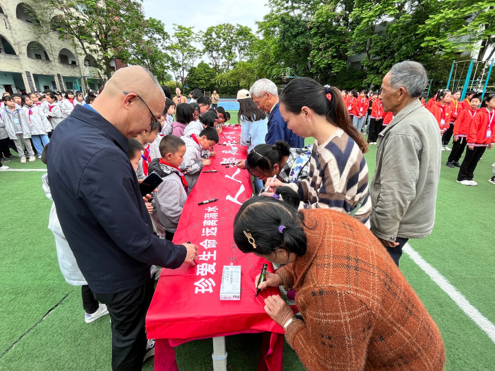 活动中,全体人员佩戴“防溺水安全员”吊牌,进行防溺水教育宣誓,开展“珍爱生命·远离溺水,人人都当安全员”签名等方式,倡导人人做参与者、人人做管理者、人人做监督者。