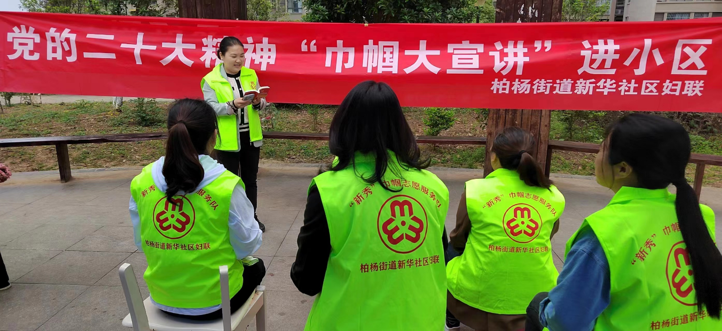 近日,柏杨街道新华社区妇联走进畔溪山语小区开展“巾帼大宣讲”活动,用通俗的语言、生动的故事、鲜活的案例深入解读党的二十大精神,让妇女群众听得懂、能领会、可落实,引导广大妇女建功新时代、奋进新征程。