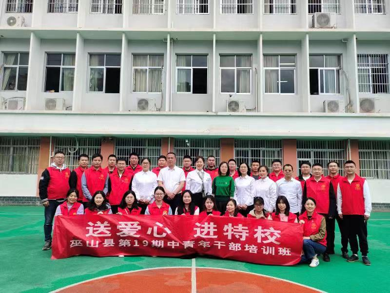 在县特殊教育学校开展送爱心进特校活动。学员们听取了该校负责人对学校办学基本情况的介绍,观看了聪慧班孩子的《啦啦操》舞蹈表演,和孩子们共同完成“你笑起来真好看”手势舞表演,同时对该校学生进行了爱心捐赠。随后,在学校负责人的带领下,学员们实地参观各类功能室、教学康复设备设施,详细了解了残障孩子们的学习生活情况,并与学生们进行了互动游戏。