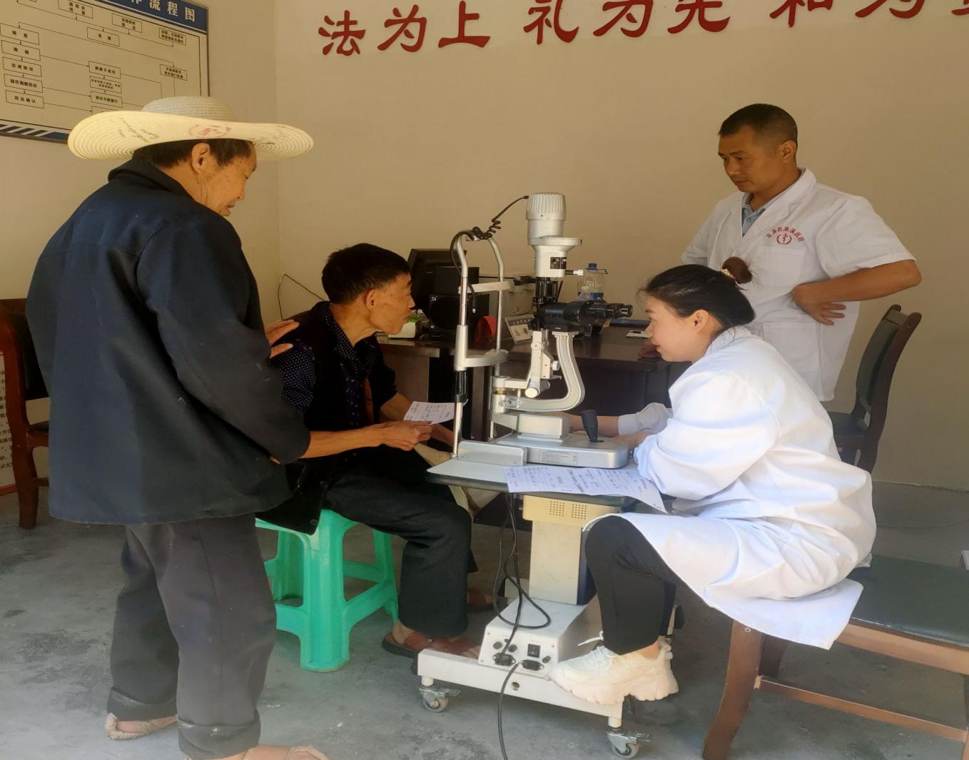 5月17日,县渝溪医院义诊团队走进中梁乡,针对60岁以上的老年人免费开展“眼科义诊进乡村,健康服务到身边”公益活动。