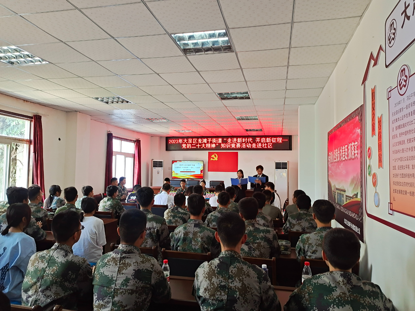 掌上大足讯(记者 罗冠骁)2023年是全面贯彻落实党的二十大精神的开局之年,为深入学习宣传贯彻党的二十大精神,进一步在基层党组织掀起学习热潮,充分发挥“以赛促学,以学促行”作用,统一思想行动,凝聚智慧力量,切实在常学常新中武装头脑、指导实践,不断践初心、铸信仰、强担当,推动党的二十大精神入脑入心。5月22日,龙滩子街道联合科技学院开展“走进新时代 开启新征程”——学习贯彻党的二十大精神知识竞赛活动。
