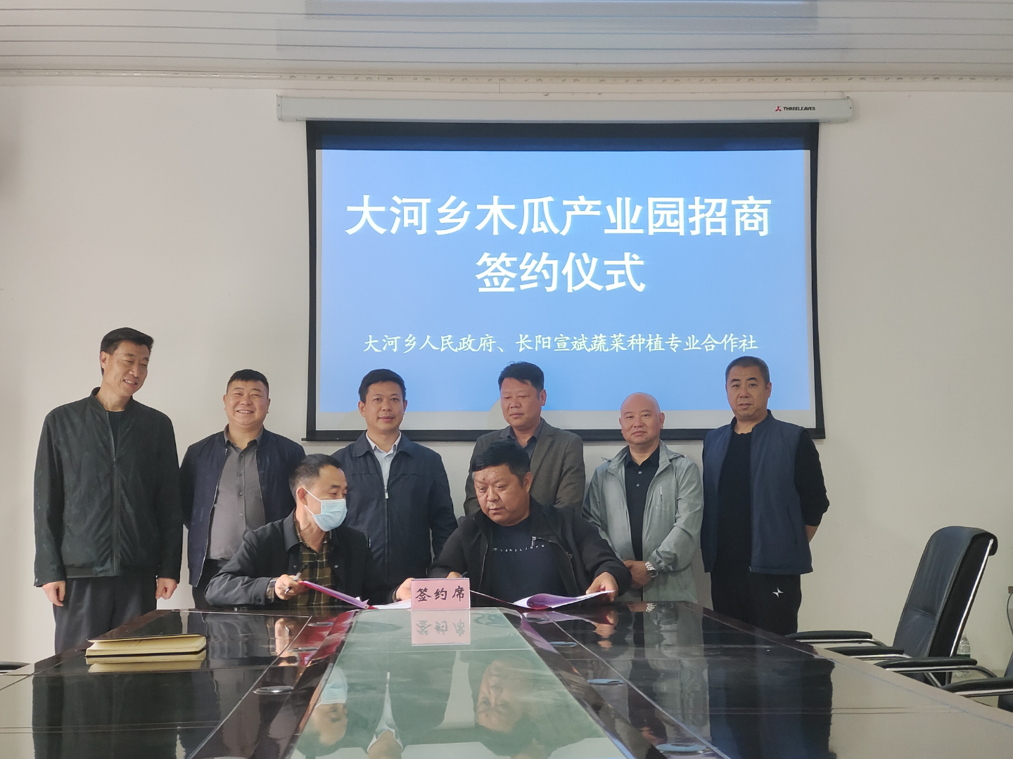 5月23日,大河乡与长阳宣斌蔬菜种植专业合作社,正式签订木瓜产业园项目框架协议。