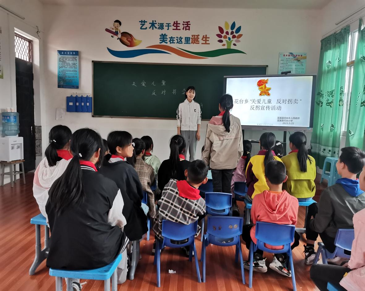 在“六一”国际儿童节即将到来之际,花台乡新时代文明实践所志愿者走进花台小学,开展以“关爱儿童,反对拐卖”为主题的志愿服务活动。