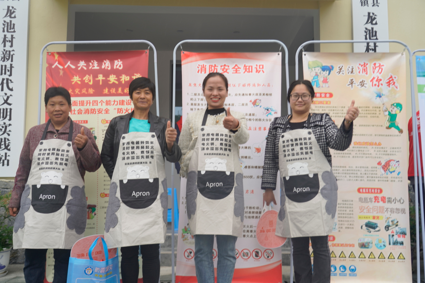 活动中,宣传人员现场设立咨询台,针对家庭用火、用气、用电等要点,向过往的农村居民发放消防知识宣传单、海报、印有消防知识的围裙、扇子等宣传物品,用通俗易懂的语言讲解发生火灾时如何逃生、如何扑救初起火灾、如何自查自纠家庭火灾隐患等消防安全常识,面对面叮嘱居民要定期清扫阳台、楼道杂物,及时更换家中陈旧老化和不合格电线电器,减少火灾隐患。