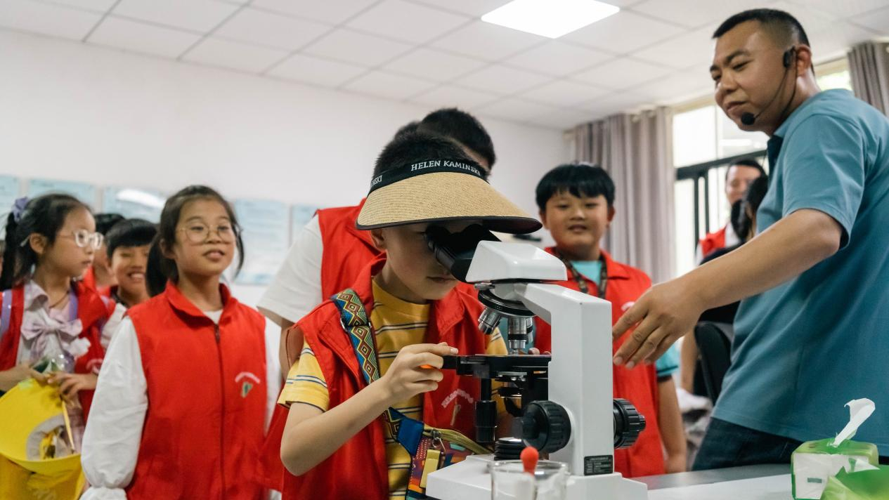 参观完处理流程后,工作人员还组织小朋友们通过显微镜观察了微生物,“微生物吃什么呀?”“微生物们可以生存多久呀?”“变清澈的水可以干什么呀?”孩子们充满好奇、争相提问,讲解员耐心进行解答。