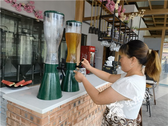 “啤酒花园”的酿酒师曾凡荣是农家妇女,一年前在山东师傅的培训下,才掌握酿酒技艺。