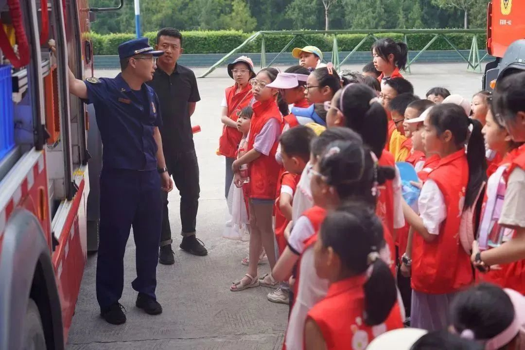 向他们详细介绍了各种消防车辆、器材装备的使用方法、功能、用途和在灭火抢险救援中所发挥的重要作用等,并让他们近距离地参观各种消防器材,以及亲身体验穿着消防灭火救援服,体验了当上一回“消防员”的感觉。