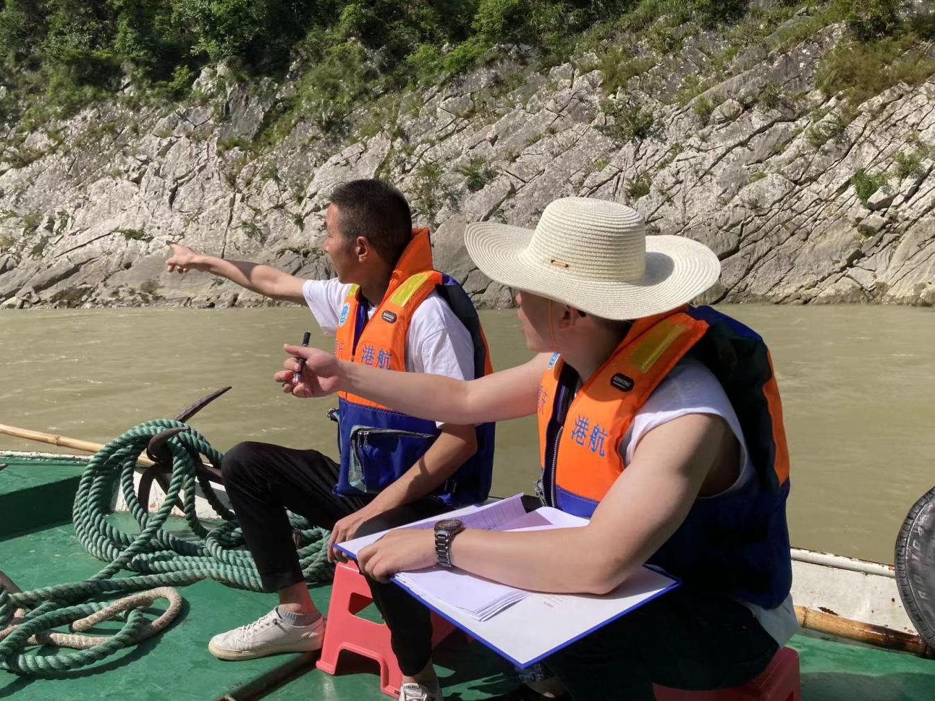 巡查以“查、看、问、巡”等方式对大宁河退水后七里桥段航道、水情变化、重要险滩进行巡查巡防。在全面了解大宁河航道条件变化的基础上,重新对辖区大宁河水域险滩情况进行摸排,对巡查水域存在的险滩、暗礁、漩涡等风险点位进行逐一核查,并对滩名、滩长、水量等基本情况进行检测、登记。