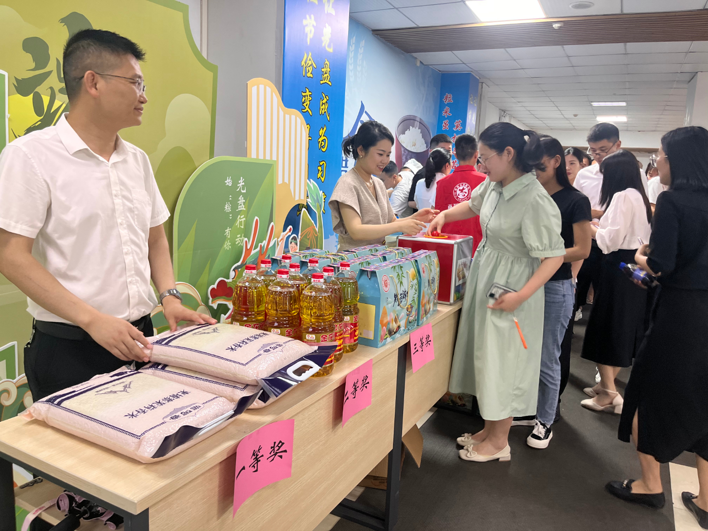 活动当天,机关干部职工就餐结束后,凭手中的“光盘”餐具获得答题抽奖机会,答对问题后获得礼品。