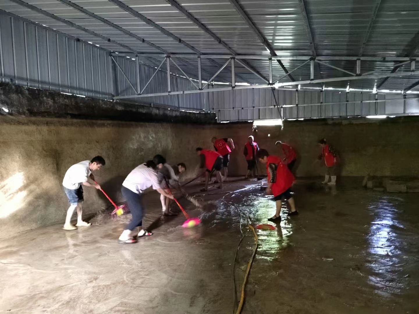 到达现场后,志愿者们有的拿着水桶、铁锹清理沙子,有的拿着扫把、梯子清理水垢,有的拿着砍柴刀对蓄水池附近的杂草等进行清理。经过5个多小时的努力,衡家涧社区饮用水蓄水池全面完成了清洗、消毒工作。