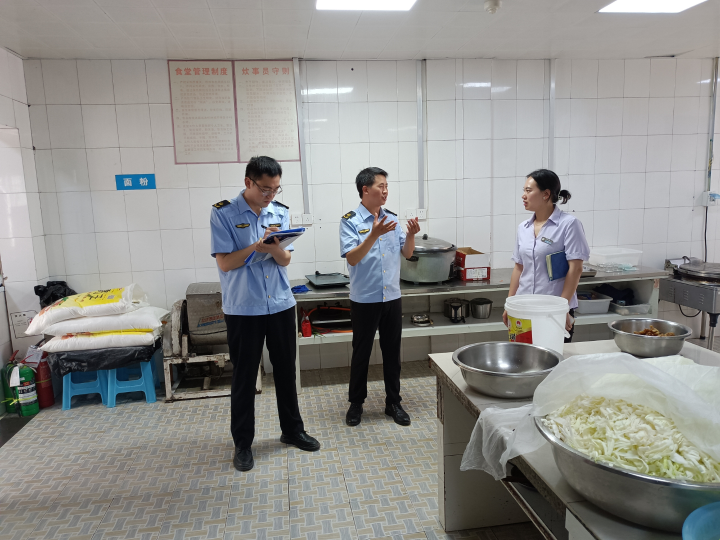 检查内容包括燃气设施的安装是否合规,燃气管道是否完好,燃气灶具是否合格,燃气阀门是否正常,用气环境是否通风,有无报警装置等。检查过程中,检查人员同企业相关负责人、食堂工作人员进行交流,了解他们的用气情况,并详细讲解安全用气知识,对检查发现的问题提出整改要求和建议,责令企业及时进行纠正和改进。