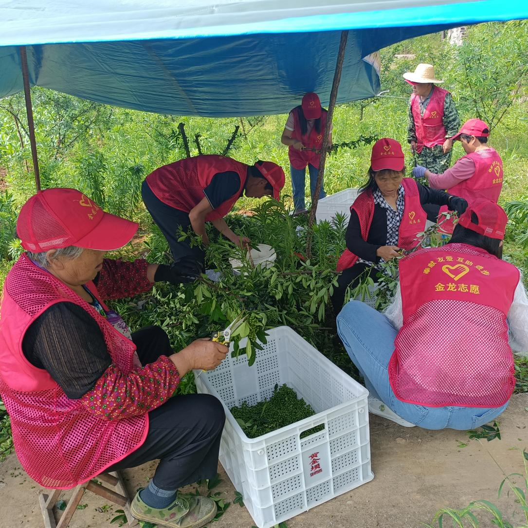 据了解,今年,塘坊镇金龙村发展了930亩花椒,现在正值采摘期,但由于近期雨水多,大部分椒农由于家庭劳动力不足以及花椒产业面积大等原因,不能及时抢收,金龙村许多椒农们为此忧心忡忡。了解到花椒采摘劳动力紧缺的实际情况,为最大限度降低损失,金龙村立即组织新时代文明实践站的志愿者们组成花椒采摘队,整个采摘期,每天奔赴田间地头助农“抢收”。