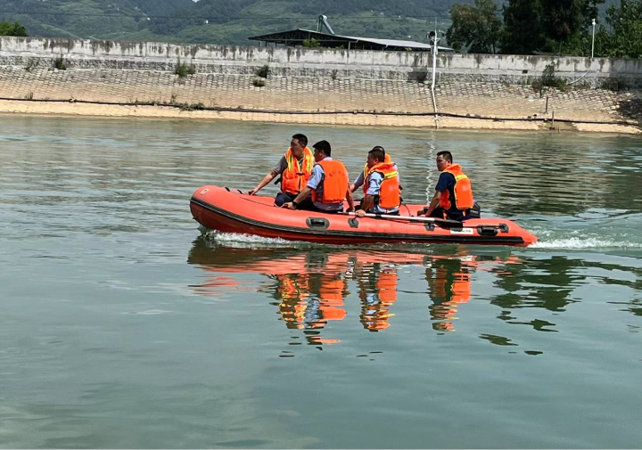 7月11日,古路镇专职消防队、古路镇派出所、古路镇应急办在白家村水库联合开展水上冲锋舟防汛实战演练,共20余人参加。