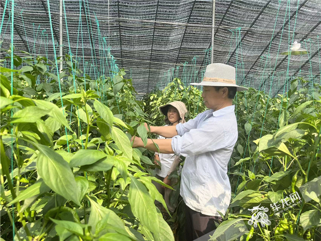 农户涂生清在“师傅”带领下学习管理辣椒。华龙网-新重庆客户端记者 陈美西 摄