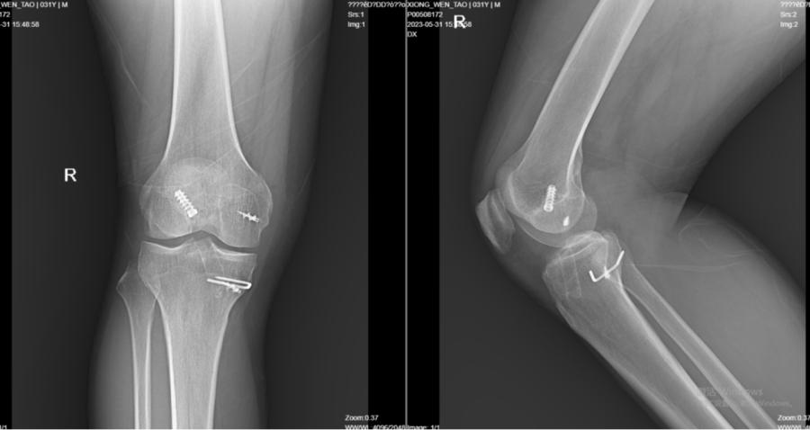 面对医学影检查的结果,患者甚至有些不理解:虽然右膝关节周缘能见到陈旧手术疤痕,但愈合良好,为什么近期出现疼痛和异响?通过怎样的手术治疗,才能确保今后不再旧病复发?
