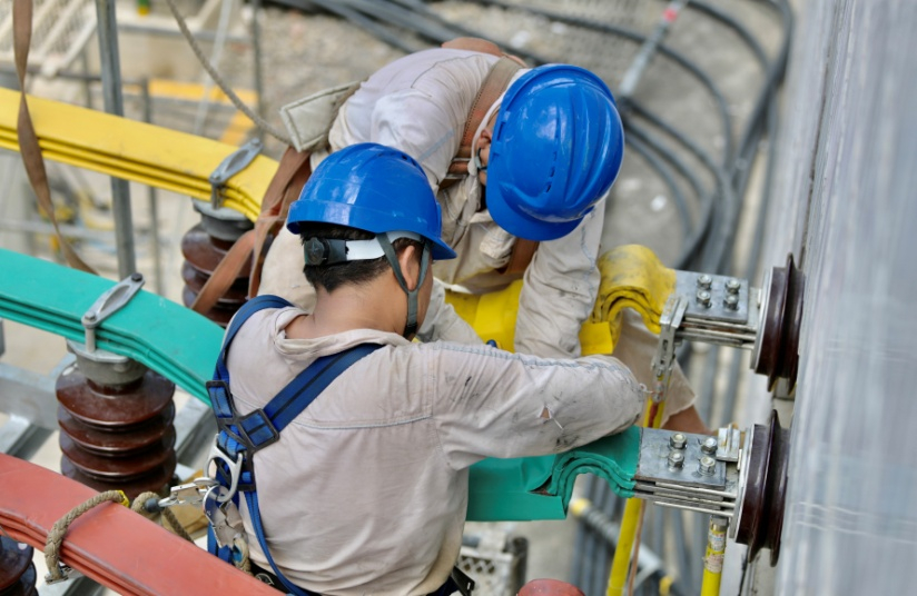▲国网重庆巫溪供电公司员工在110千伏镇泉变电站紧固中压侧穿墙套管与引流线夹连接螺栓。