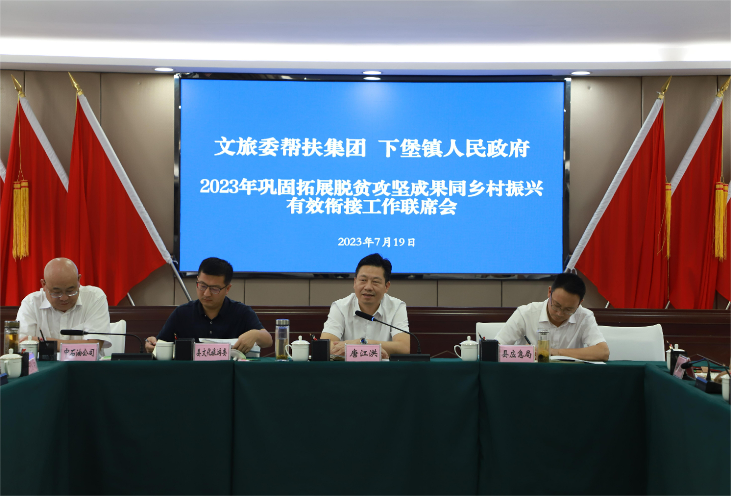 联席会上,唐江洪听取了下堡镇2023年乡村振兴工作情况汇报。他强调,巩固拓展脱贫攻坚成果同乡村振兴有效衔接是政治任务,是民生工程,也是底线工作。各帮扶单位和有关县级部门要以更有力的举措,汇聚更强大的力量,助力下堡镇做实做好乡村振兴这篇大文章;要充分发挥农村资源禀赋优势,坚持产业结构调整、大力发展现代特色农业,推动农业增产增效;要因地制宜加快乡村产业高质量发展,扎实推进乡村建设,加强和改进乡村治理,将宜居宜业和美乡村建设各项任务落到实处;要持续巩固脱贫成果,强基固本力推产业发展,确保工作成效经得起检验,以真抓实干为乡村振兴贡献下堡力量。