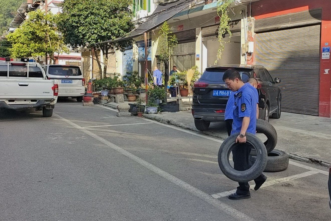 针对长期摆放在公共停车位上的各类广告牌、反光锥桶和障碍物,文峰镇开展集中清理,并结合城市管理相关政策和法律法规,对违规占用公共停车位的当事人进行批评教育,引导其规范经营,加强"门前三包"责任落实。