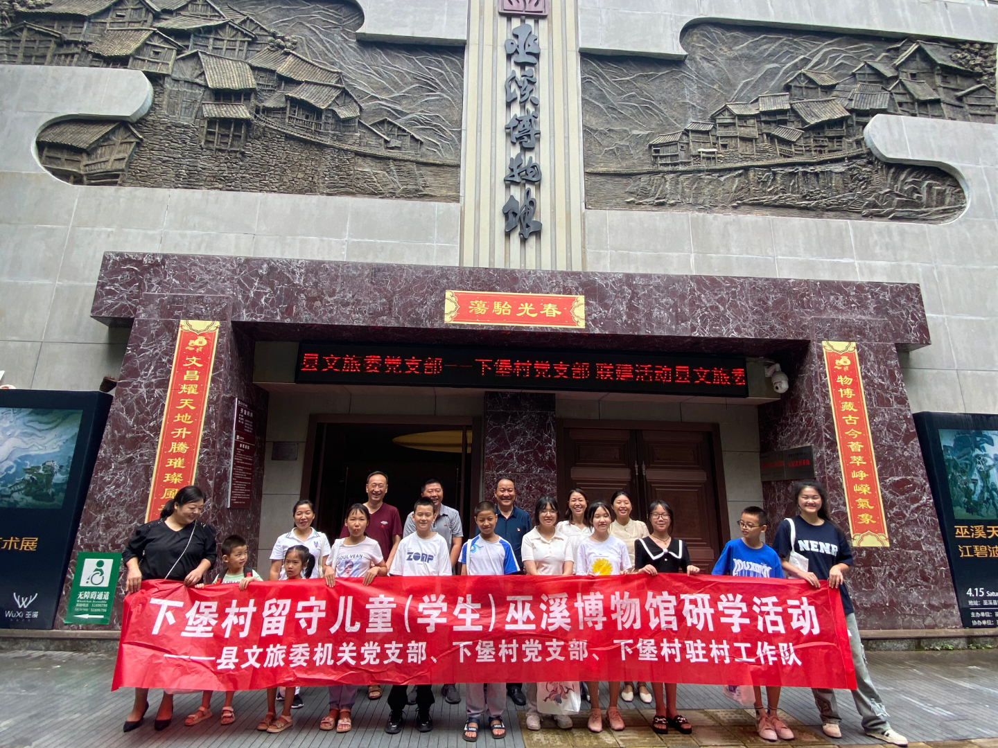 “今天是我暑期最开心的一天,在博物馆里了解到了不一样的家乡与我们巫溪特有的巫盐文化.....”7月25日,在下堡镇下堡村党支部、驻村工作队和结对联建县文旅委机关党支部的组织下,辖区10余名留守儿童走进巫溪博物馆开展实地研学活动。