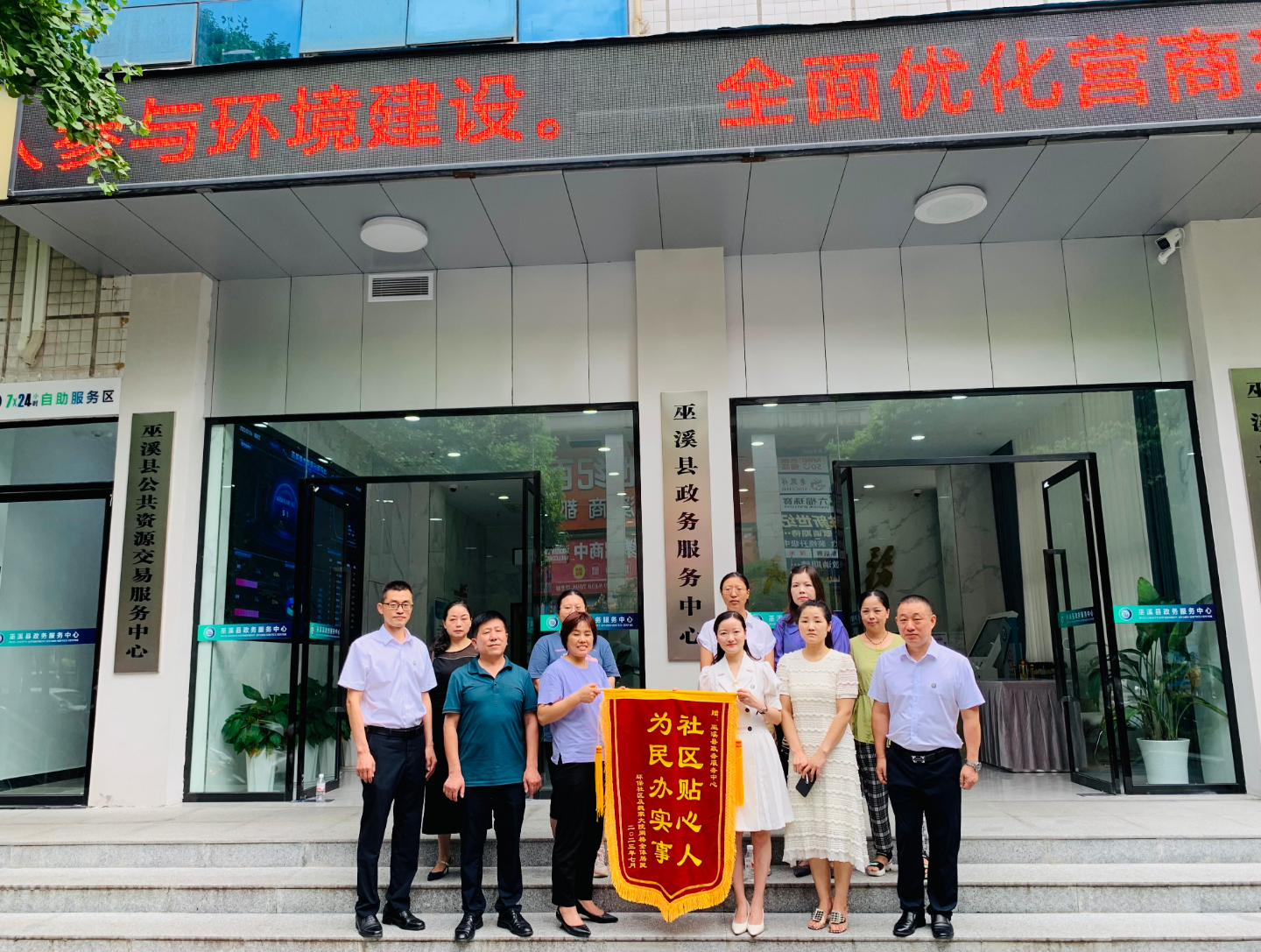 “现在周边环境卫生好多了,有了安全围栏,现在还可以在院子里开展坝坝舞等娱乐活动,这都要感谢县政务服务中心,我们社区的贴心人。”7月26日,宁河街道环保社区火纸厂片区的居民,在社区干部的陪同下,带着锦旗来到县政务服务中心表示感谢。