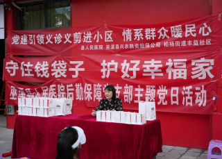 7月27日,丰益社区“大党委”联合县人民医院、兴农融资担保有限公司,在百杏苑小区开展“党建引领”义诊义剪进小区、“情系群众”暖民心活动。