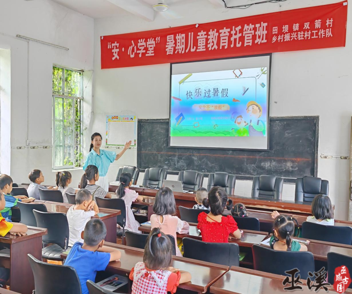 近日,田坝镇双箭村乡村振兴驻村工作队面向驻地村社适龄儿童开设“安·心学堂”暑期儿童教育托管班,让儿童们度过快乐、充实的暑假生活。