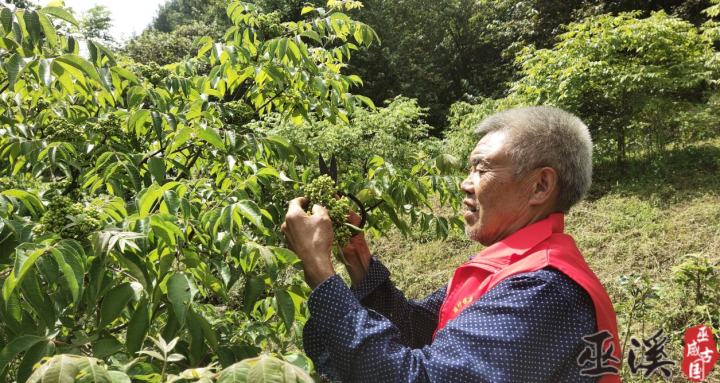 村民、志愿者头戴草帽分布在各处,手法娴熟地把一棵棵吴茱萸摘下,放入袋中,吴茱萸特殊的药香味四处飘荡。“别小看这些小小的吴茱萸,成熟之后就是村民的致富宝”,正在采摘的志愿者李吉勇说到。