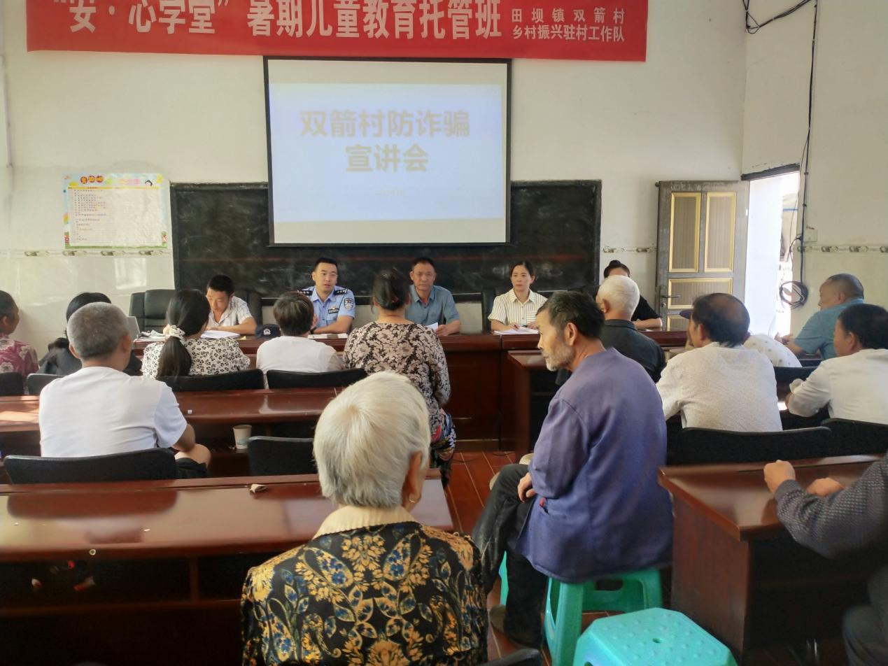 8月15日,田坝镇新时代文明实践所、应急办、平安办联合辖区派出所在双箭村开展“普法宣传进村社 平安法治入人心”宣传教育活动。