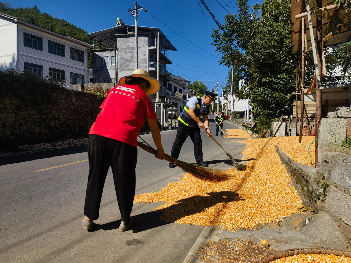 眼下正是秋收时节,我县不少村民为抢抓晒粮的好天气,将门前宽敞平整、阳光充足的公路变为晾晒玉米的“大院坝”,对过往车辆带来严重隐患。