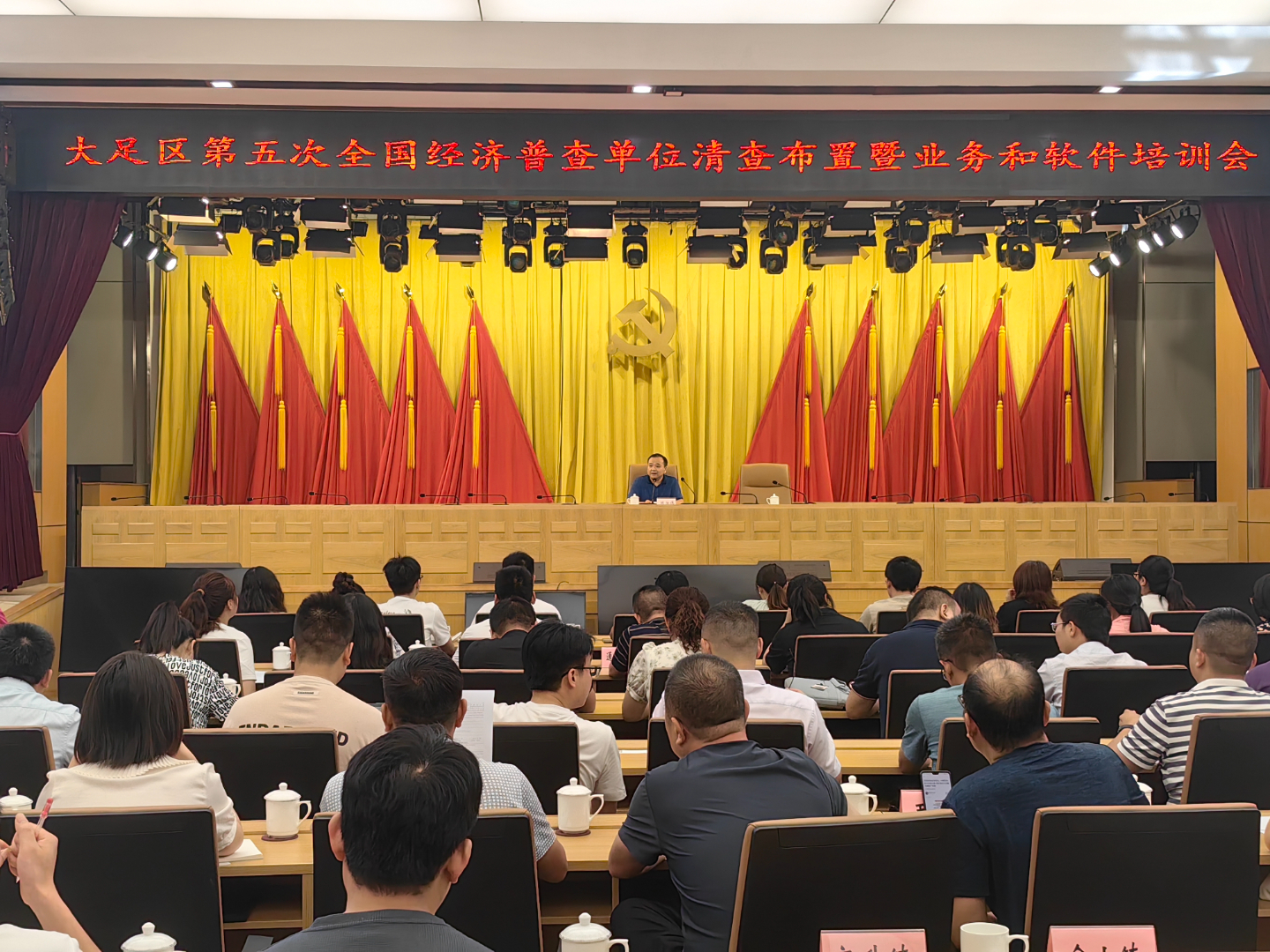 抓实业务培训,用精兵强将确保数据质量。大足区坚持提升普查数据质量,针对近800名普查员、指导员(以下简称“两员”)开展“五经普”单位清查布置暨业务和软件培训,就清查重点指标、流程、表式等内容,以及单位清查软件使用操作进行全方位讲解,着力提升参训人员业务能力。