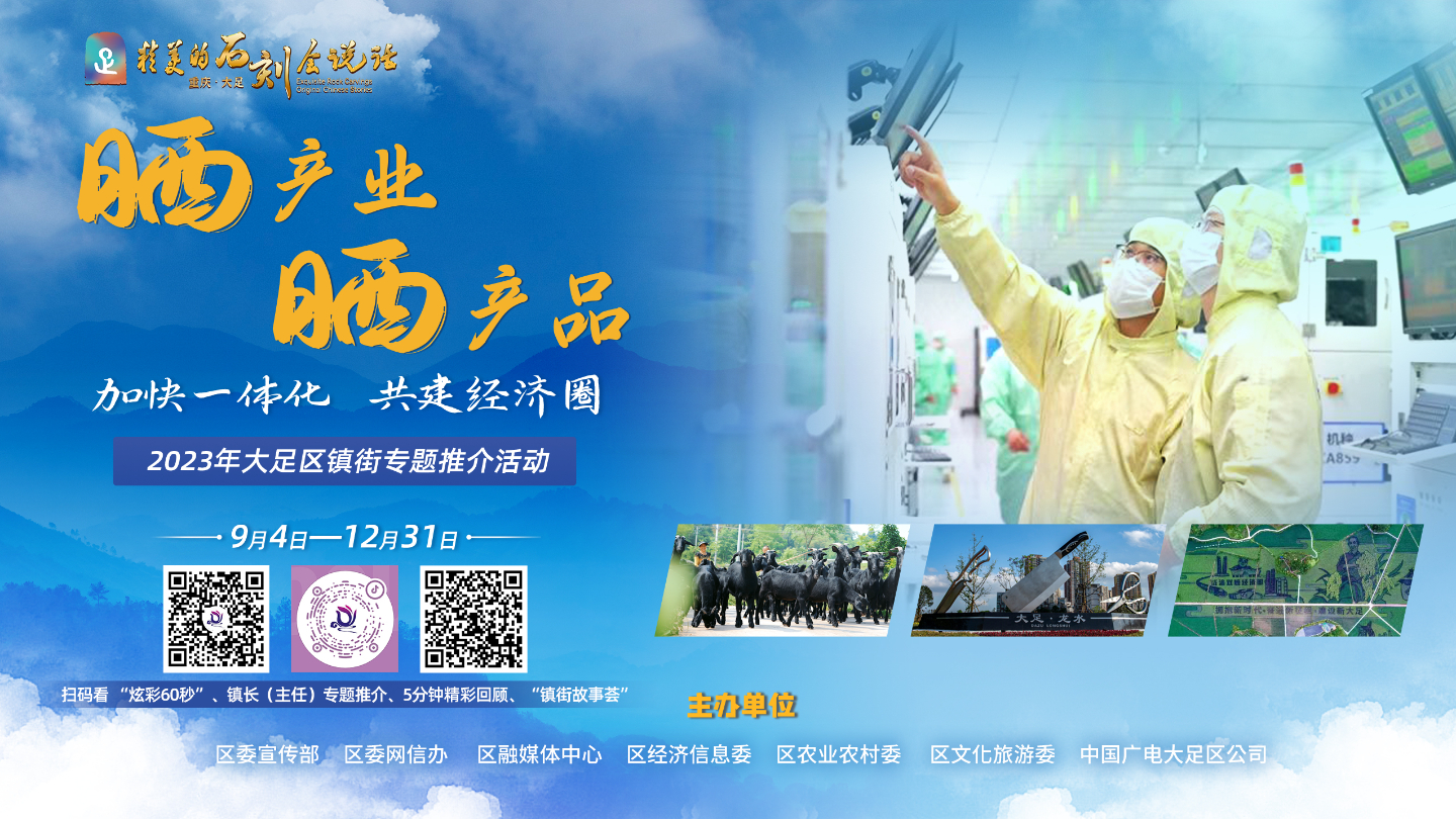 同时,网易新闻重庆专版、《新渝报》从9月5日起也将推出“镇街故事荟”。每期推介视频播出次日,各镇街逐一亮相,以优美的故事美文、精彩的图片,探索和述说本地最具特色的产业、产品以及背后的故事,邀请读者在字里行间,一同感受大足产业发展脉动、赏阅产业发展魅力。
