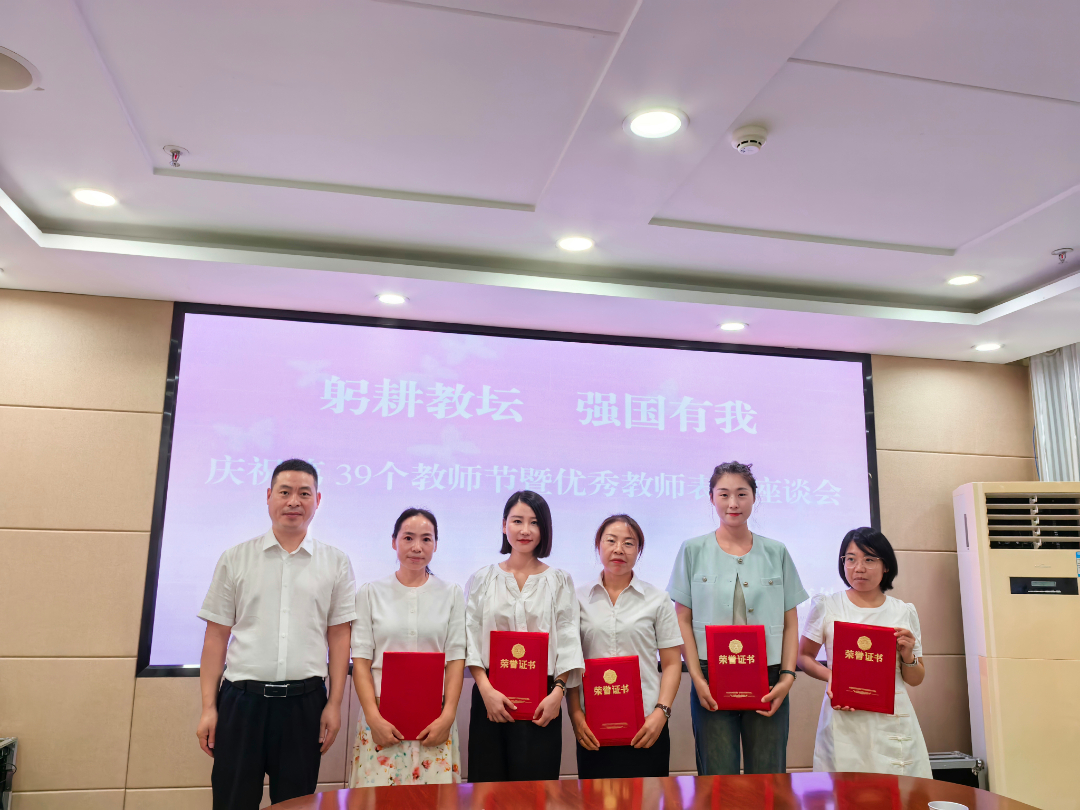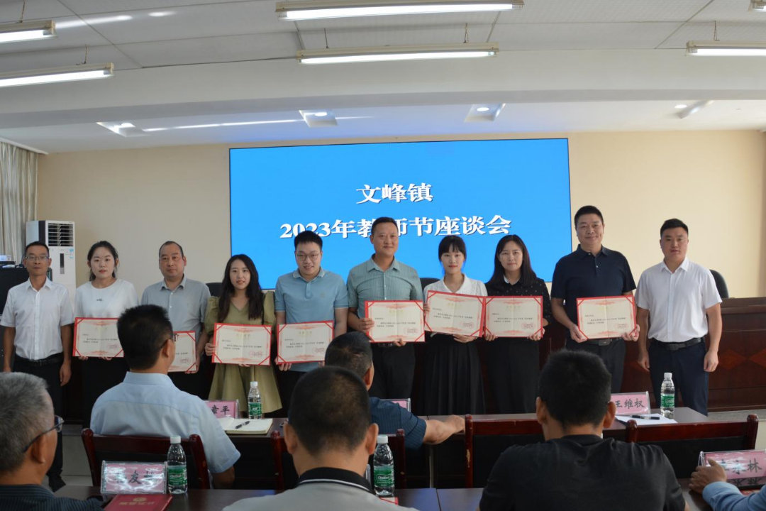 9月6日,文峰镇召开第39个教师节座谈会,授予杜章平等54名老师“优秀教师”荣誉称号并颁发荣誉证书。(通讯员 胡玉兰)