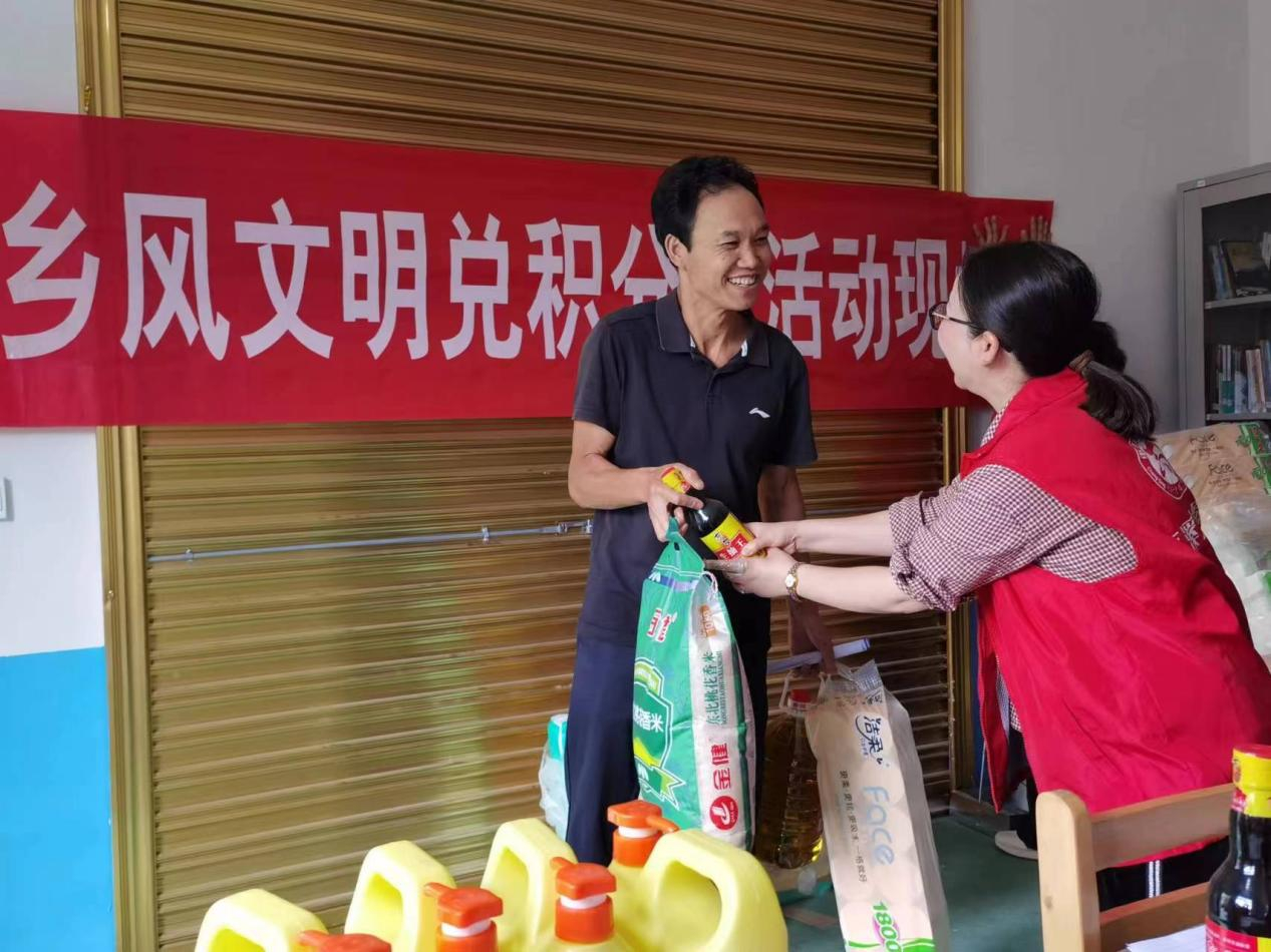 活动结束后,古树村村支两委为在场群民兑换生活物品,大家左手一袋大米,右手一桶食用油,脸上纷纷洋溢着笑容。